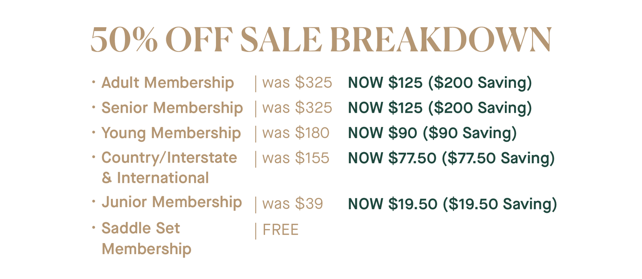 For a limited time only, receive 50% off your 2025/26 Membership PLUS No Joining Fee until the end of the Sportsbet Adelaide Racing Carnival on Saturday, May 9.