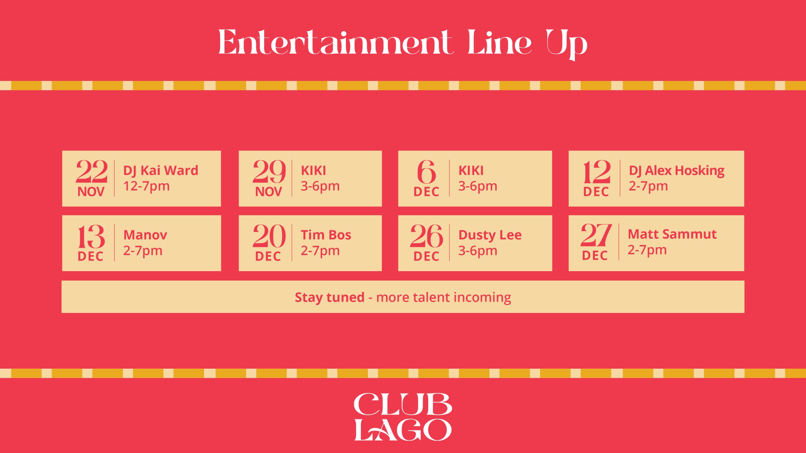 WHAT’S ON AT CLUB LAGO?